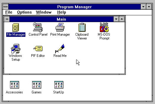 Le versioni di Windows precedenti alla 95 basavano la propria interfaccia grafica su un applicativo, denominato Program Manager. Esso raggruppava le icone in gruppi, a seconda della funzione o del programma di appartenenza, ed organizzava lo spazio di lavoro. Lanciando un applicativo, la sua icona si posizionava sul fondo del desktop (eredità delle precedenti versioni) e dunque per spostarsi da un programma all’altro senza l’uso della tastiera, era necessario ridurre tutti i programmi ad icona per poi agire sul collegamento desiderato.